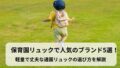 このようにサイズごとの特徴を比較しておくと、子どもの年齢や使うシーンに合ったリュックを選びやすくなります。